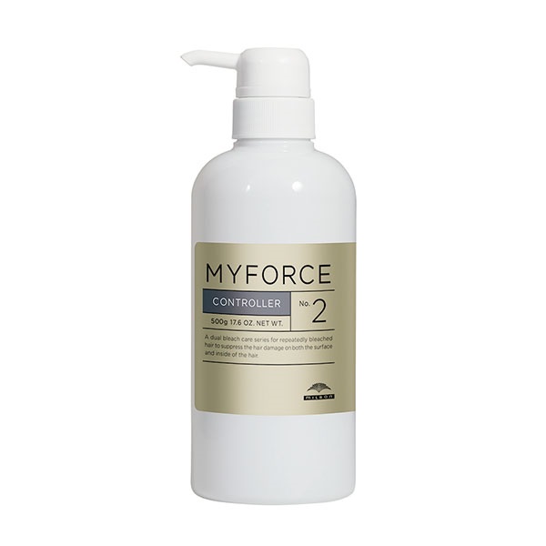 ブリーチの繰り返しによる切れ毛を髪の内部と表面、ダブルで防ぐ「マイフォース コントローラー」。